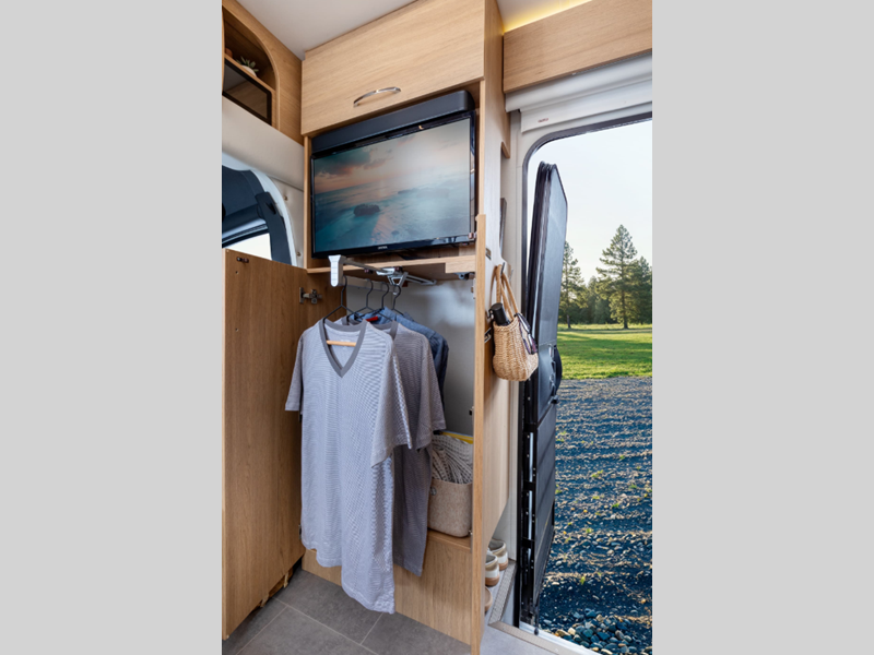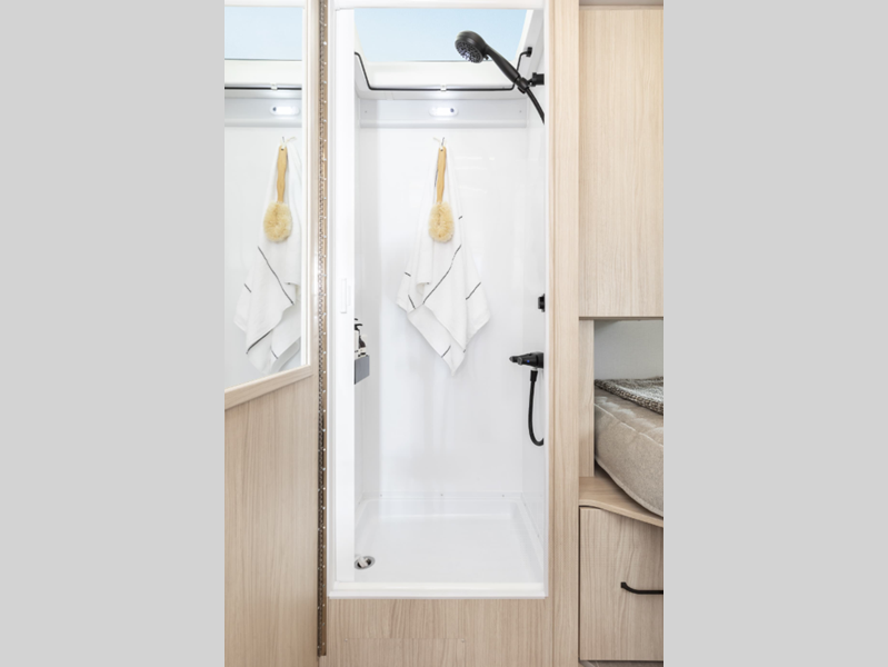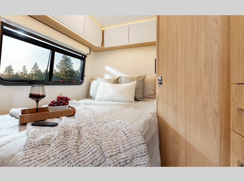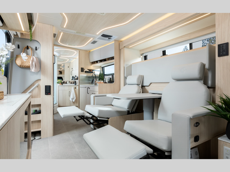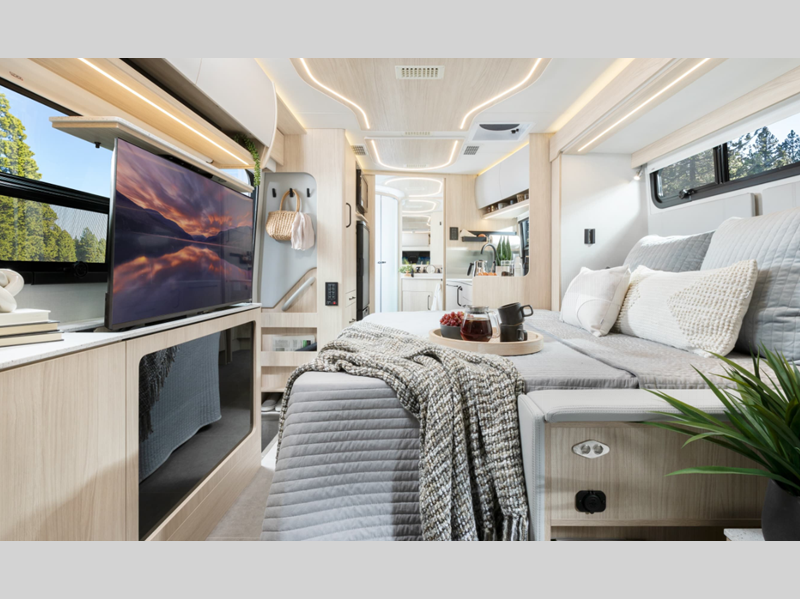 Sleeps 2 Slides 1 Length 25 ft 1 in Ext Width 7 ft 11 in Ext Height 10 ft 6 in Int Height 6 ft 4 in Interior Color Dove, Sand, Clay Exterior Color Euro Sport, Silver, Diamond White, Glacier, Atlantic Blue GVWR 11030 lbs Fresh Water Capacity 25.6 gals Grey Water Capacity 35 gals Black Water Capacity 30.6 gals Fuel Type Diesel Engine 2.0-L Turbocharged I-4 Diesel Chassis Mercedes-Benz Sprinter 3500 Horsepower 208 hp Fuel Capacity 24.5 gals Wheelbase 170 in Available Beds Murphy Torque 332 ft-lb Refrigerator Type 12V Compressor Refrigerator w/Bottom Freezer Convection Cooking Yes Cooktop Burners 2 LP Tank Capacity 15.8 gals. Water Heater Type Truma AquaGo Comfort Plus AC BTU 13500 btu Basement Storage 40 cu. ft. TV Info LR 40" Smart TV with Lift Awning Info Powered Legless Box w/Wind Sensor & LED Lights Shower Type Radius Similar Floorplans
