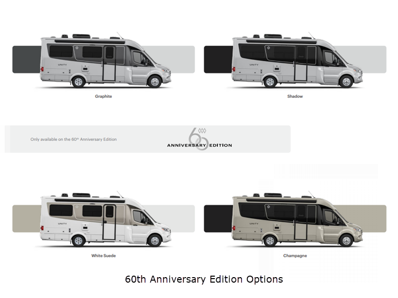 There are six versatile floorplans to choose from, all including dry baths, fully-equipped kitchens to prepare meals each day, and comfortable sleeping arrangements. Each model sits on the durable and luxurious Mercedes-Benz Sprinter 3500 dual rear wheel chassis for the ultimate driving experience, plus there are power/heated Ultraleather cab seats for even more comfort. And since Leisure Travel is celebrating 60 years of innovation, you can add the optional 60th Anniversary Edition with sleek a Diamond White exterior and modern interior finishes!