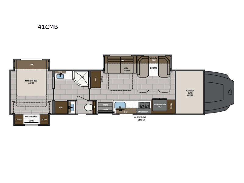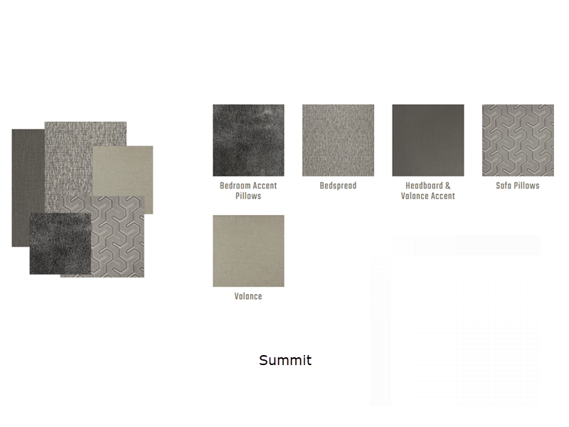Sleeps 7 Slides 3 Length 41 ft Interior Color Summit, Ridgeline, Ascent Exterior Color Unpainted White or 3-Tier Paint Personalization Fresh Water Capacity 150 gals Grey Water Capacity 75 gals Black Water Capacity 75 gals Generator 12.5kW Onan Quiet Diesel Fuel Type Diesel Number Of Bunks 1 Available Beds Mini King Refrigerator Type French Door Residential w/Stainless Steel Doors Refrigerator Size 18 cu ft Convection Cooking Yes Cooktop Burners 2 Number of Awnings 1 Water Heater Type Aqua Hot 450D Hydronic TV Info LR 4K Smart LED TV, BR 4K Smart LED TV, Ext. 43" Smart LED TV Awning Info Roof Mounted Girard 2 Stage Lateral Arm w/LED Lights Washer/Dryer Available Yes Shower Type Radius Electrical Service 50 amp Similar Floorplans