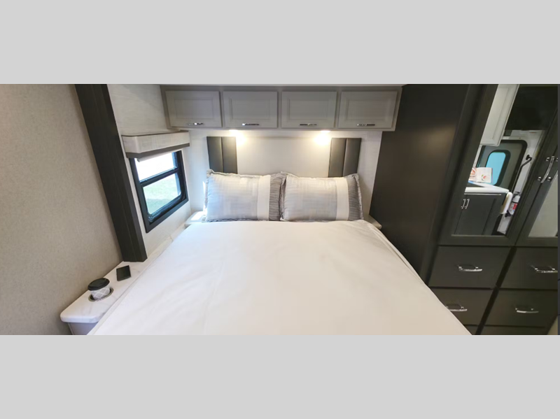 Sleeps 4 Slides 1 Length 30 ft 4 in Ext Width 8 ft 3 in Ext Height 12 ft 6 in Int Height 7 ft Interior Color Overlook, Morning Breeze Exterior Color Cityscape Edition ll Partial Paint. Clear Lake ll, Monterey Bay ll, Santa Ana Wind ll Full Body Paint Choices Hitch Weight 12000 lbs GVWR 19500 lbs Fresh Water Capacity 65 gals Grey Water Capacity 50 gals Black Water Capacity 50 gals Furnace BTU 30000 btu Generator Onan RV QD 6,000 Diesel Fuel Type Diesel Engine Power Stroke 4x4 Turbo V8 Chassis Ford F550 Horsepower 330 hp Fuel Capacity 66.5 gals Wheelbase 205 in Number Of Bunks 1 Available Beds Murphy Refrigerator Type Residential Cooktop Burners 3 Shower Size 30" x 36" Number of Awnings 1 LP Tank Capacity 68.2 lbs Water Heater Type Tankless Basement Storage 54 cu. ft. TV Info Smart TV; LR 40", Entry Door 40", Ext. 32" Awning Info 18' Power with LED Lights Gross Combined Weight 43000 lbs Shower Type Standard Electrical Service 50 amp Solar Wattage 500 watts Similar Floorplans