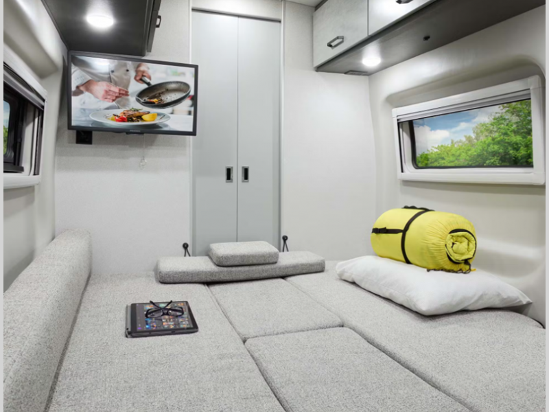 Their compact design is well equipped with all the essential comforts, including a full kitchen to prepare delicious home-cooked meals on the road, a comfortable sleeping area for a good night’s rest, and a Winegard Connect 2.0 system to help you stay connected. The Thule® lateral arm power patio awning with integrated LED lighting creates the perfect ambiance for campground gatherings. With rugged all-terrain tires, you can go farther and feel ready for any outdoor adventure.